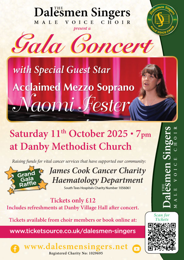 The Dalesmen Singers present a concert in Boosbeck Village Hall, sponsored by Green & Son Building Services. A fantastic evening, with all money raised going to support the local community. |